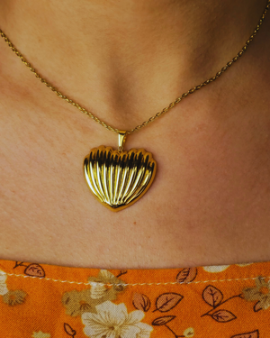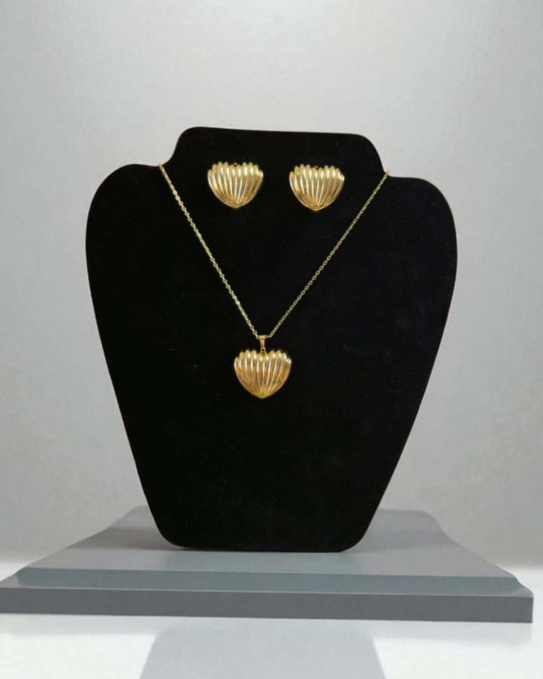 Un cœur texturé aux lignes douces, comme sculpté par les vagues 🌊. Le collier et les boucles d’oreilles assorties vous plongent dans un univers marin et apaisant.