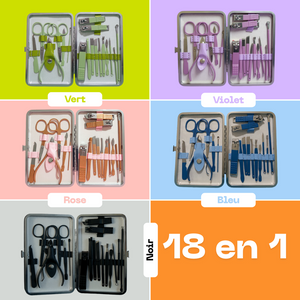 Prenez soin de vous avec style grâce à Élégance 18, un kit complet de 18 pièces conçu pour sublimer vos mains et vos pieds au quotidien.