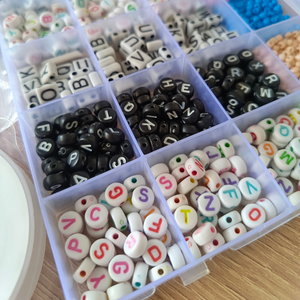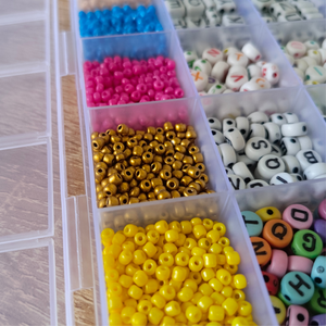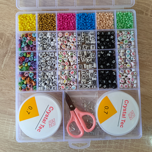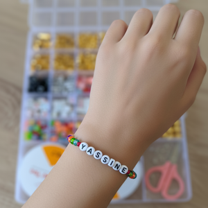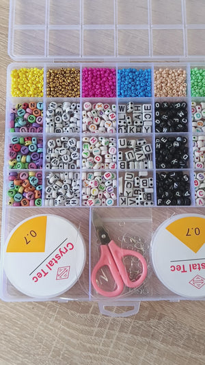🎨 Exprime ta créativité avec ce magnifique kit de perles complet ! Crée facilement tes propres bracelets, colliers et porte-clés personnalisés grâce aux perles colorées, aux lettres et aux accessoires inclus.