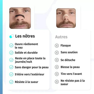 Une combinaison de plastique de qualité médicale et d’aimants en néodyme ultra-résistants garantit un dilatateur nasal durable et incroyablement efficace. Nos languettes sont fabriquées à 100 % avec des matériaux de qualité médicale, sans latex et hypoallergéniques. Notre superposition exclusive permet un effet anti-transpiration, ultra-adhésif et qui reste en place toute la journée et toute la nuit.