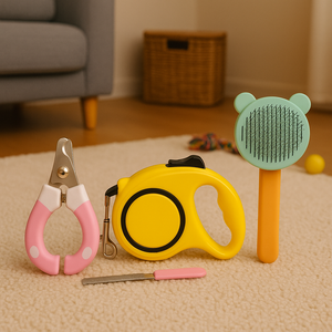 Pack Accessoires de Soin & Promenade pour Animaux – Coupe-Griffes | Laisse Enrouleur | Brosse