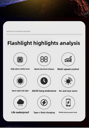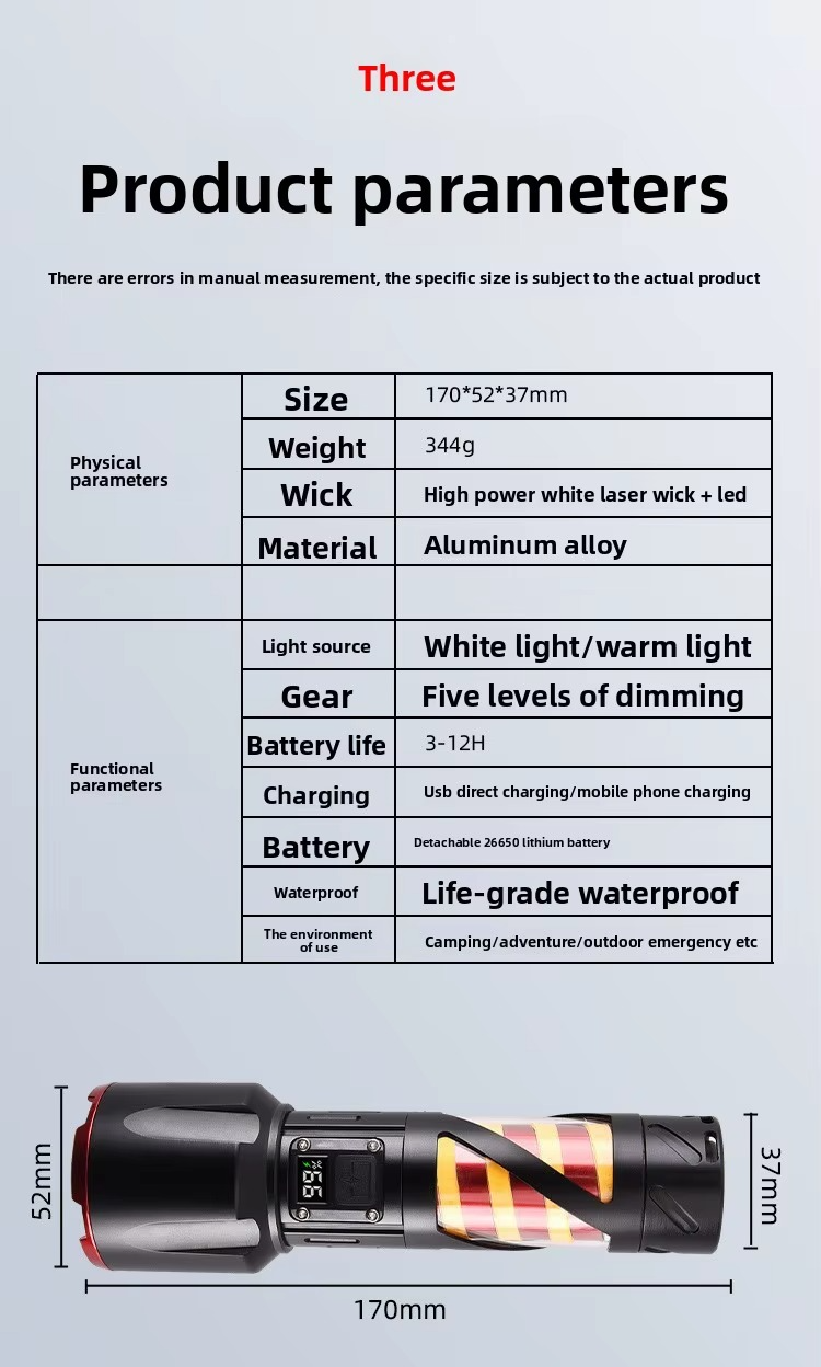 • 🔍 Zoom Télescopique : ajustez facilement le faisceau, du spot précis au large projecteur.