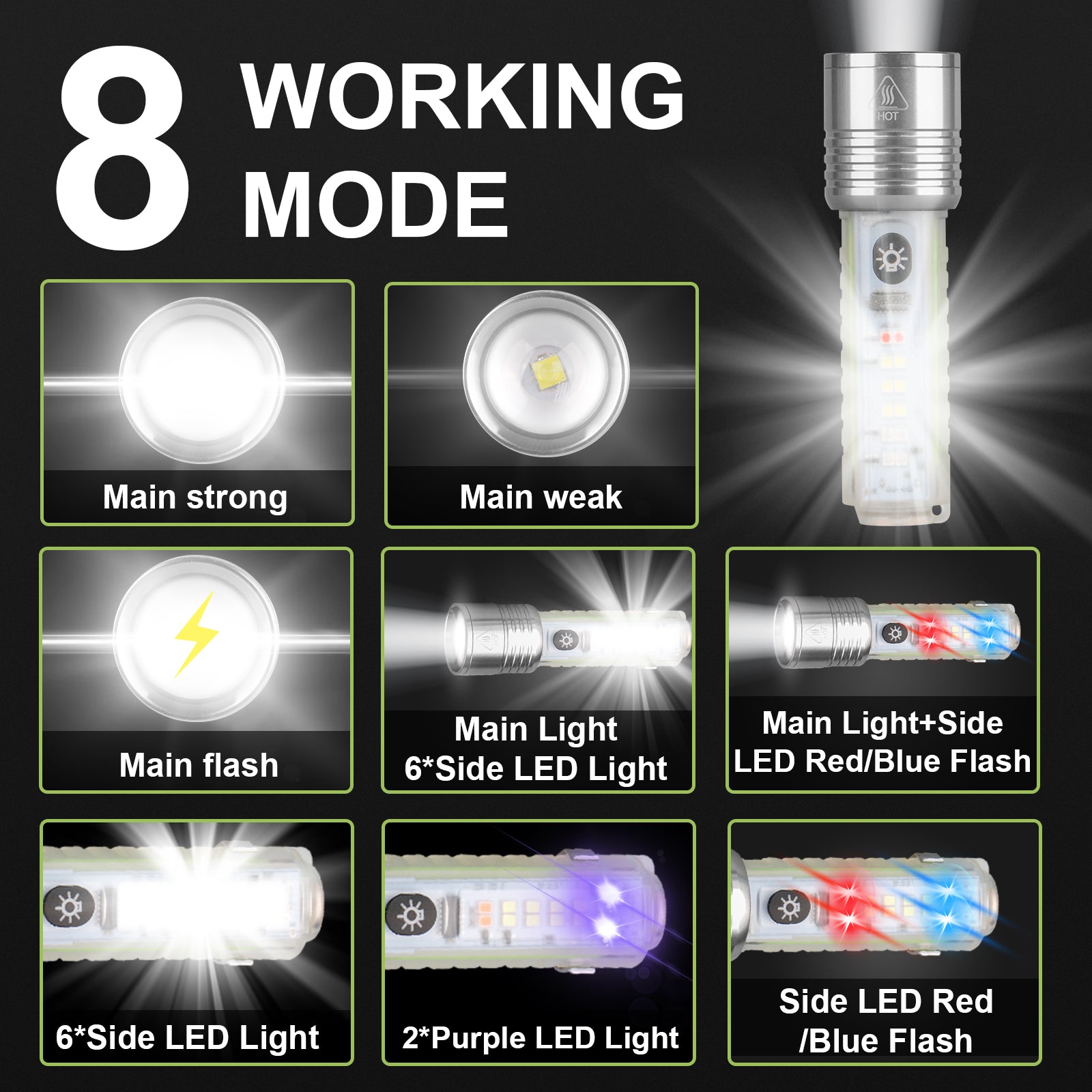 Avec cette torche LED super lumineuse et sa mini torche offerte, vous êtes prêt pour toutes les situations : camping, randonnées, réparations de nuit ou urgences.