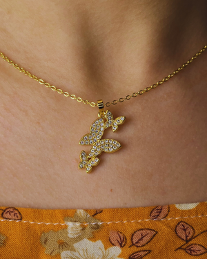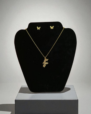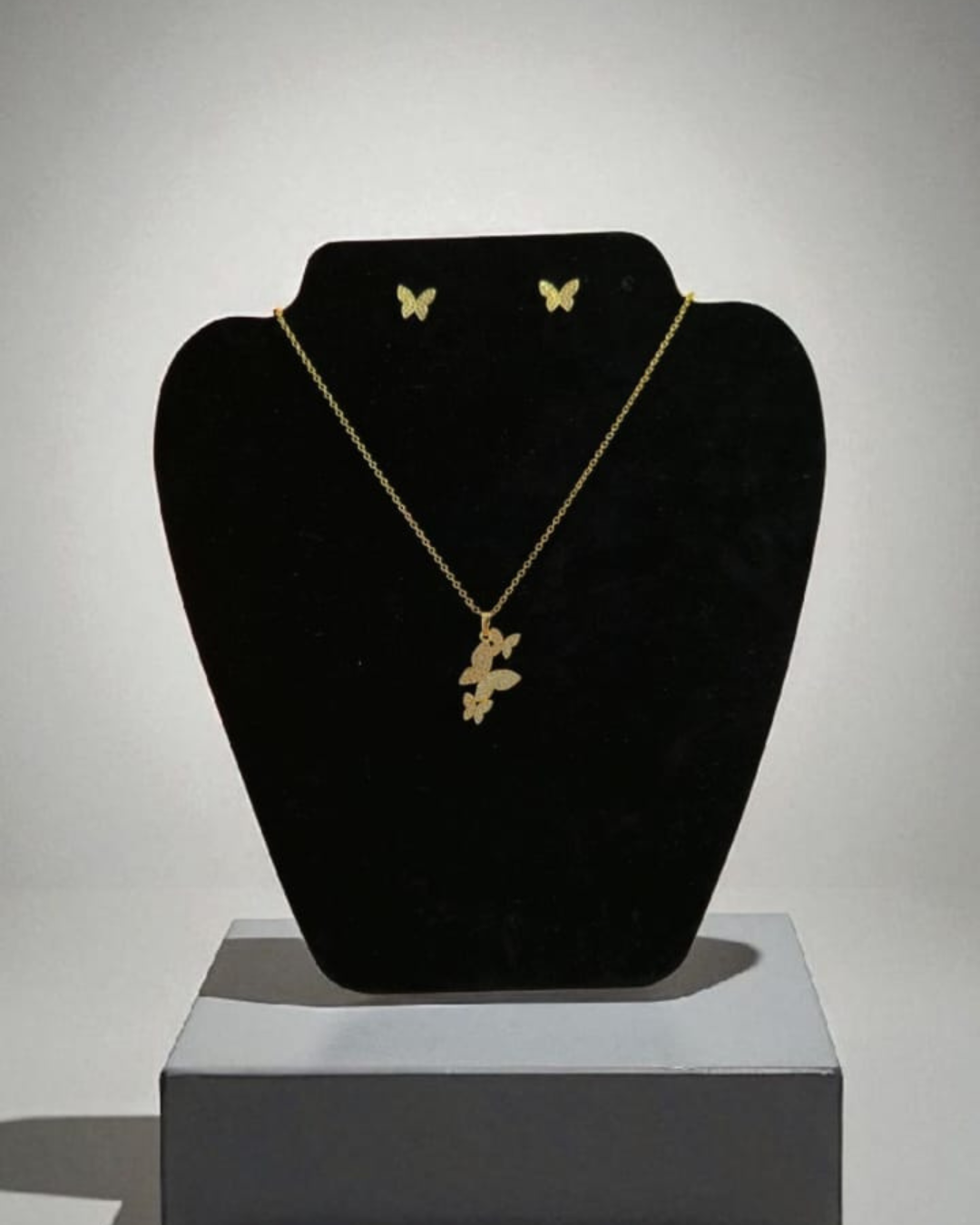 Un collier délicat orné de papillons en mouvement 🦋 accompagné de boucles d’oreilles assorties. Une touche poétique pour les esprits libres et rêveurs.
