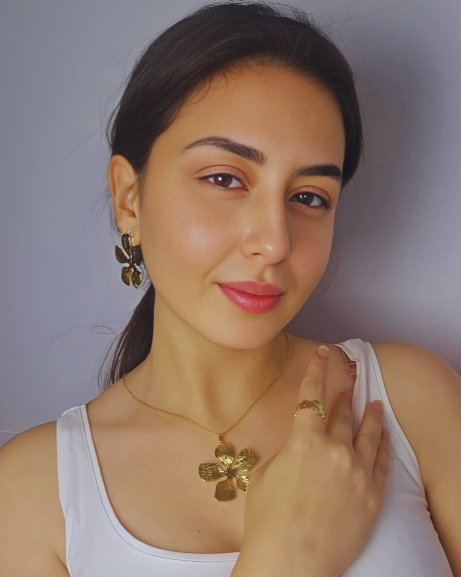Offrez-vous (ou à quelqu’un de spécial) une touche d’élégance intemporelle avec notre Set Blum Éternelle — une parure complète inspirée de la délicatesse des fleurs et conçue pour durer ✨